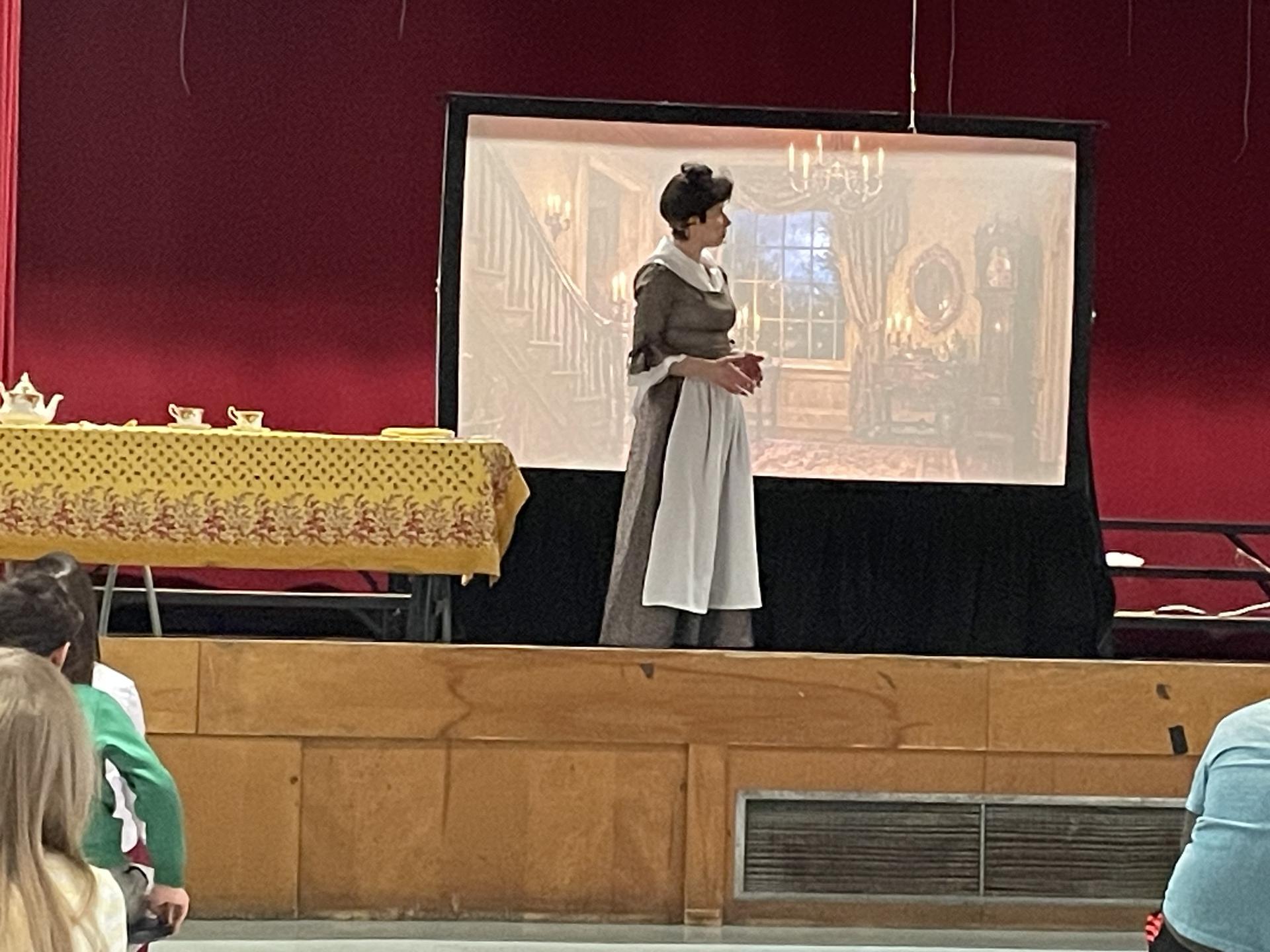 Grade 3 students experienced a portrayal of Abigail Adams, supporting social studies standards focused on early American history. |